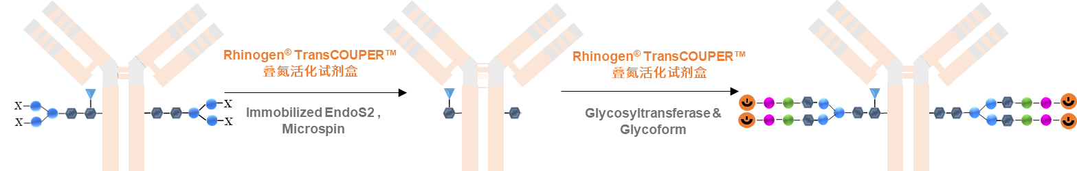 通過 LC-MS 測定,Rhinogen? TransCOUPER? 疊氮活化試劑盒對 100 μg 人 IgG1 的轉糖基化率 ≥ 95%。
