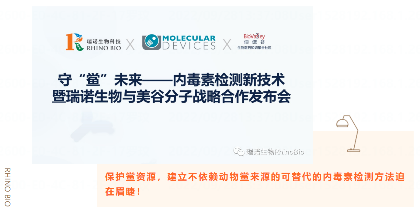 2022年5月20日,瑞諾生物與美谷分子儀器舉辦了守“鱟”未來(lái)·內(nèi)毒素檢測(cè)新技術(shù)——暨瑞諾生物與美谷分子戰(zhàn)略合作發(fā)布會(huì)?;谠诟髯灶I(lǐng)域的專業(yè)互補(bǔ),雙方經(jīng)過(guò)多次技術(shù)交流,達(dá)成戰(zhàn)略合作伙伴關(guān)系,并決定首先在內(nèi)毒素檢測(cè)領(lǐng)域展開(kāi)深度合作。
